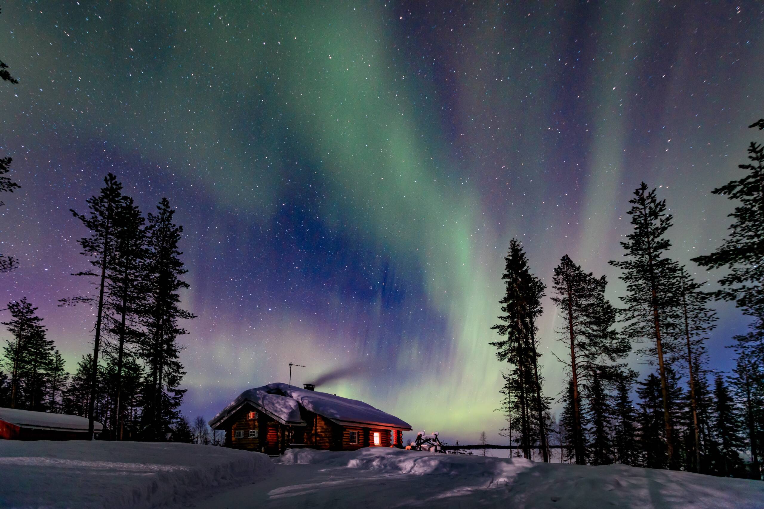 Ontdek de betoverende witte landschappen van Fins Lapland. Lapland is gehuld in een betoverend winterlandschap met een dikke laag sneeuw, bevroren meren en het indrukwekkende Noorderlicht.